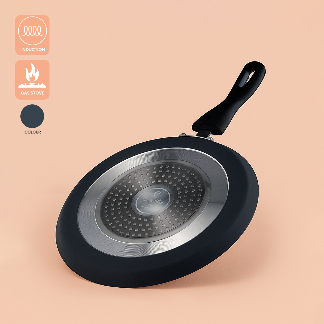 Cookify - Duron Non-Stick Flat Tawa 260mm features a durable 3-layer coating with a captivating granite finish, crafted using advanced German technology. Its chrome-finished, heat-resistant handle offers an elegant design and sturdy grip. PFOA-free and scratch-resistant, this tawa ensures superior heat conductivity for even cooking. Dishwasher safe and easy to clean, it is ideal for preparing dosa, roti, and more. Backed by a 1-year warranty, it combines functionality with lasting performance for expert cooking results.