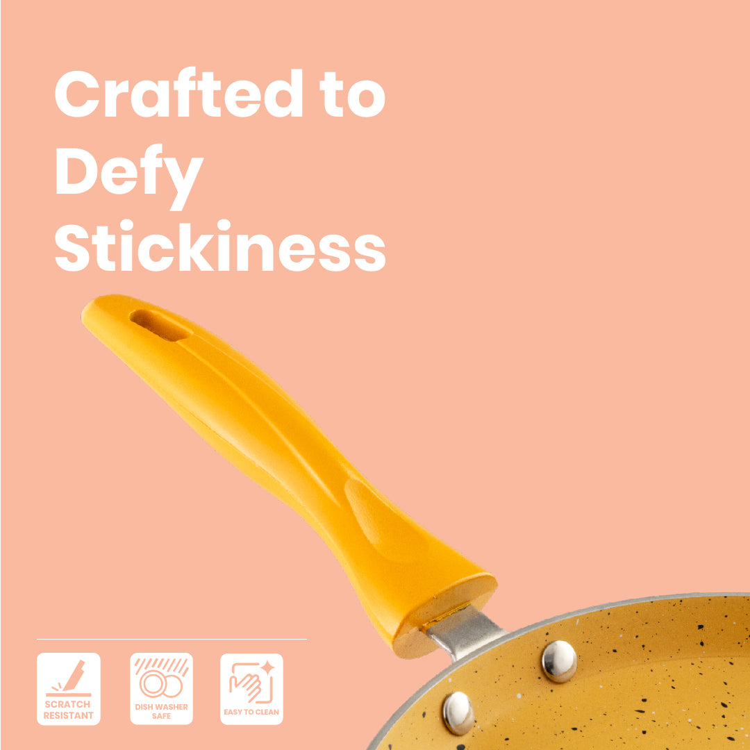 Cookify Liora Non-Stick Flat Tawa with Spatter Coating, 28 cm, Amber Yellow